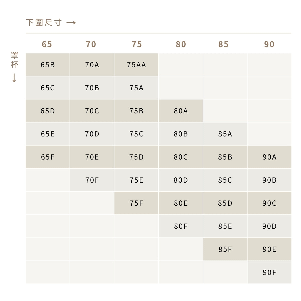 下圍變大⬆,罩杯字母要變小⬇