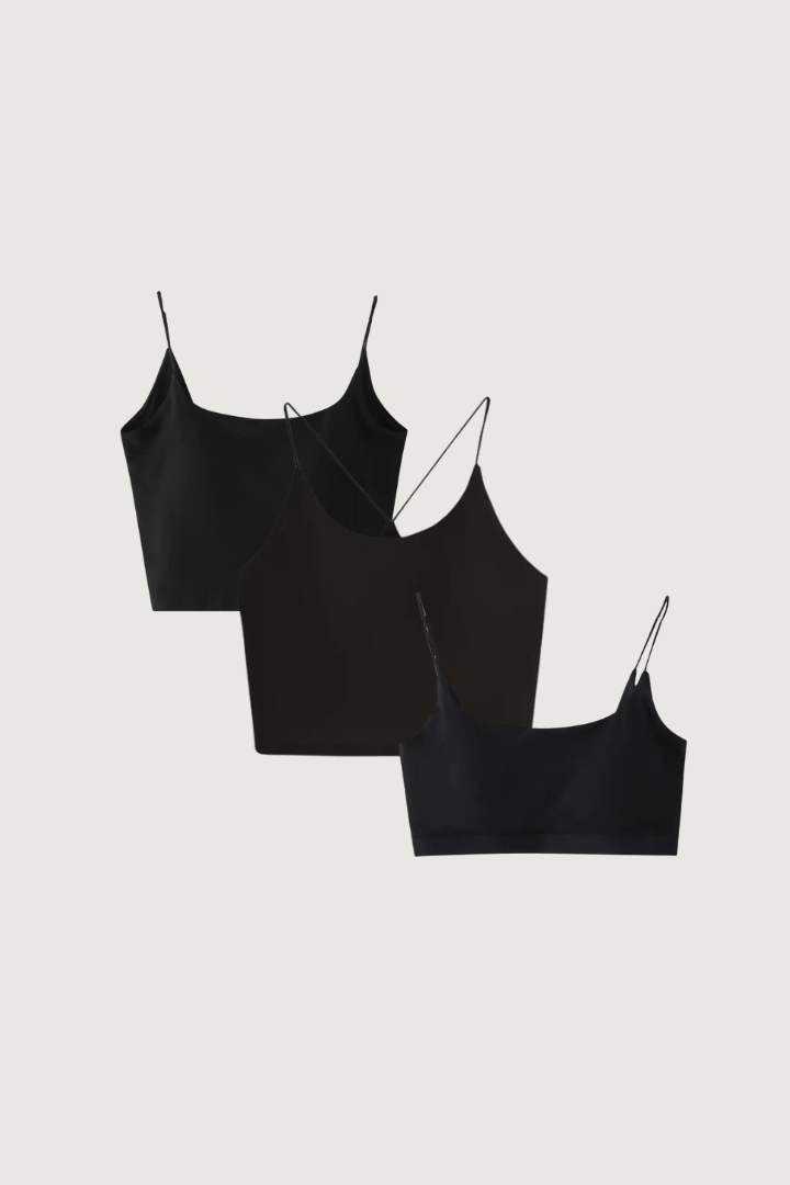 細肩挖背 Bra Top 3 件組|短版+長版+Y型|黑