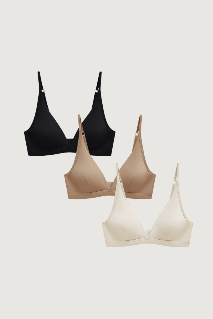 柔亮・涼感深V三角杯 II 代 3 件組|黑+米白+奶咖