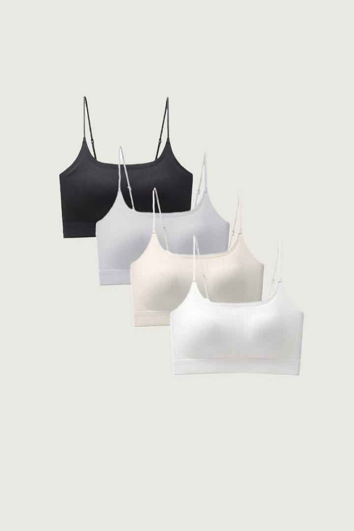 水洗感美背 Bra Top 4 件組|黑+白+摩卡+淺杏