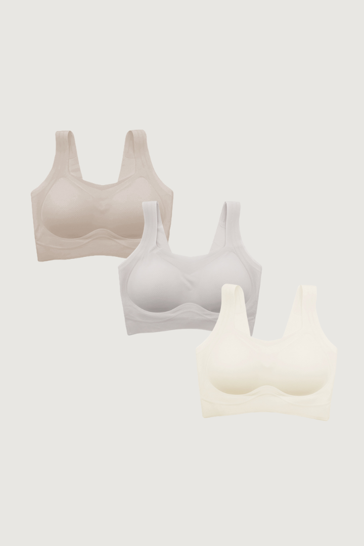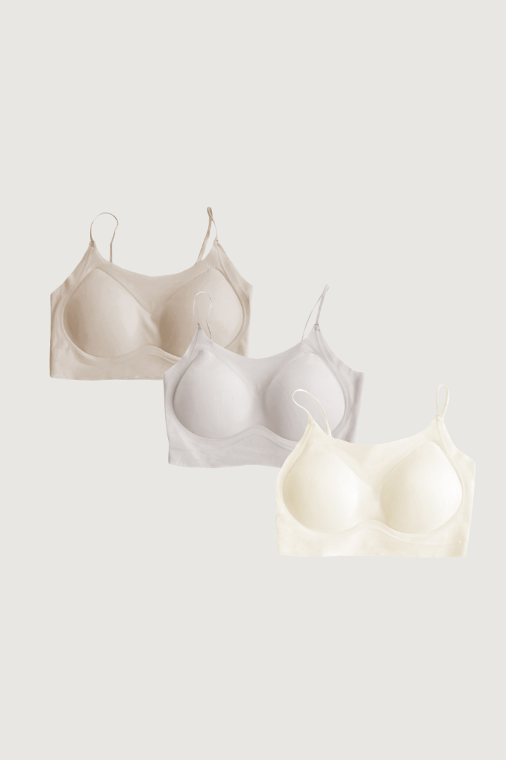 無痕・雲感寬肩 3 件組|裸灰+裸膚+裸米