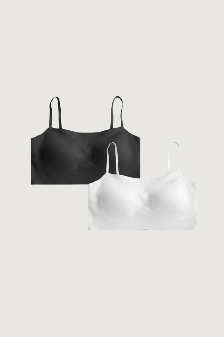 無痕 · 自由尺碼細肩簡約款短版 2 件組|黑+白
