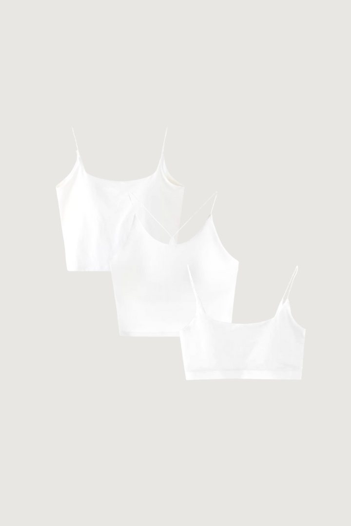 細肩挖背 Bra Top 3 件組|短版+長版+Y型|白