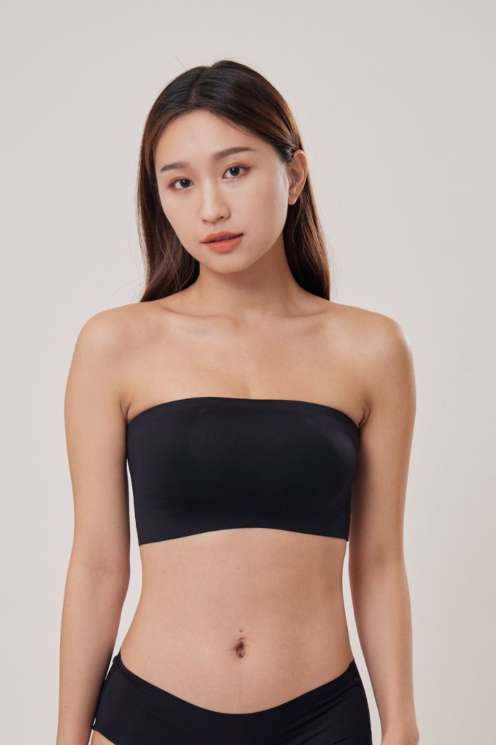 柔亮・無墊防滑平口內衣(附胸貼)|黑色