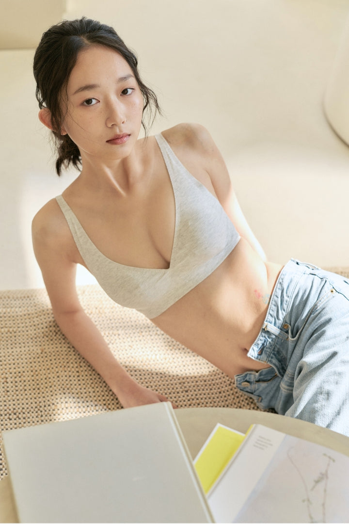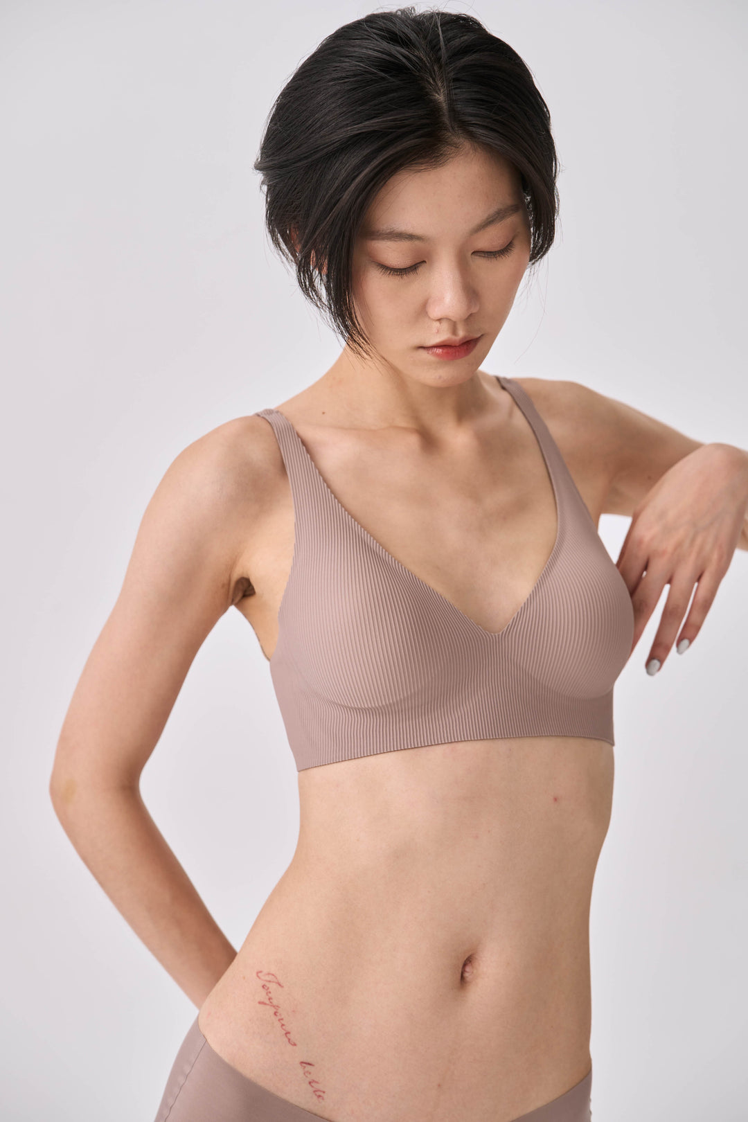 柔韌・舒芙蕾V領薄襯三角杯|榛果棕