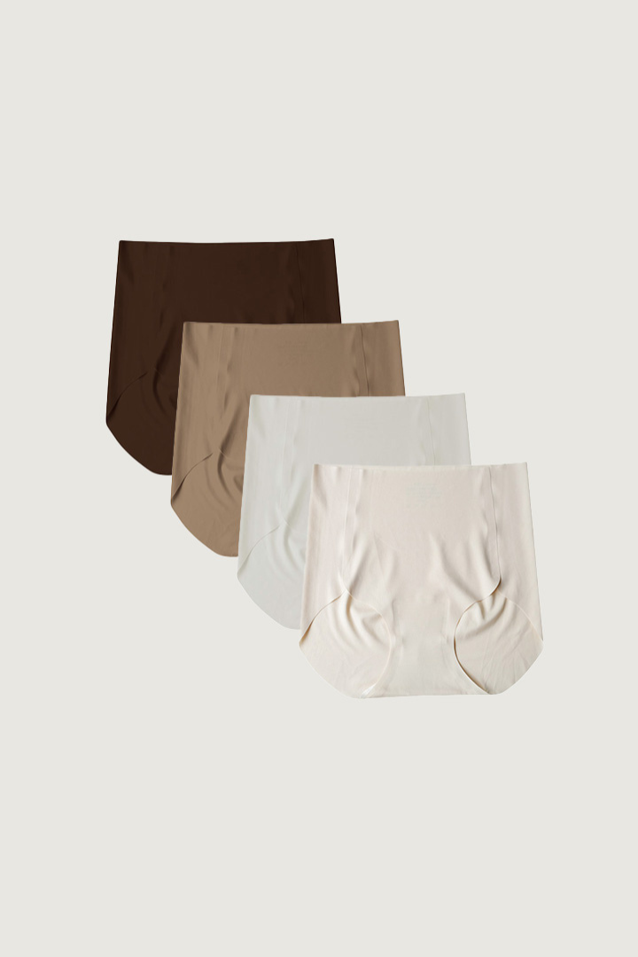 無痕 · 極高腰包臀內褲 4 件組|深棕+卡其+杏膚+裸膚