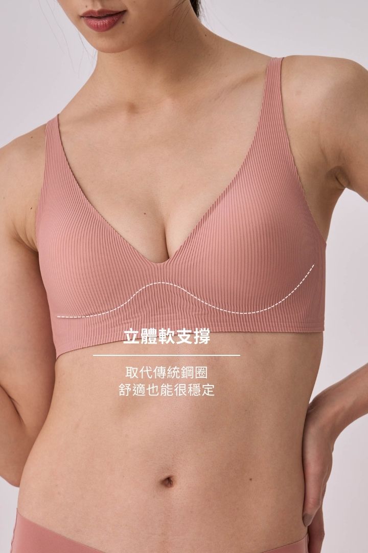 柔亮・螺紋軟支撐三角杯|珊瑚粉